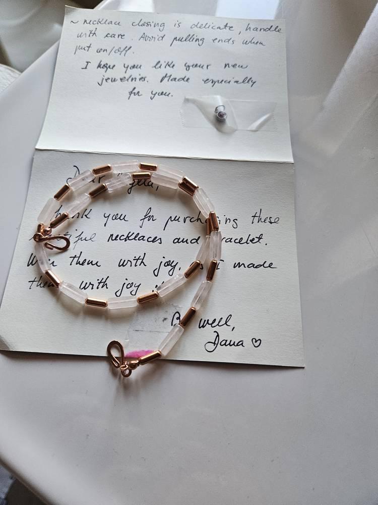 This necklace is beautiful. Blends really well with all of my outfits. Very lovely. My new favorite piece of jewelry. Customer service is superb. Thank you Dana for your constant communication 🙏